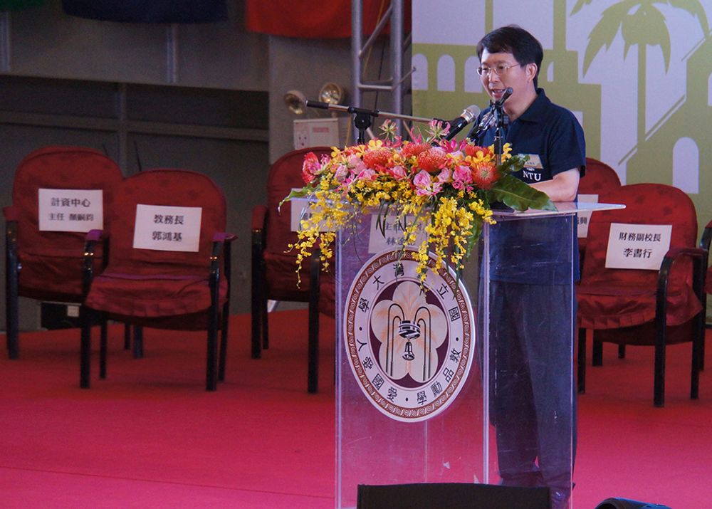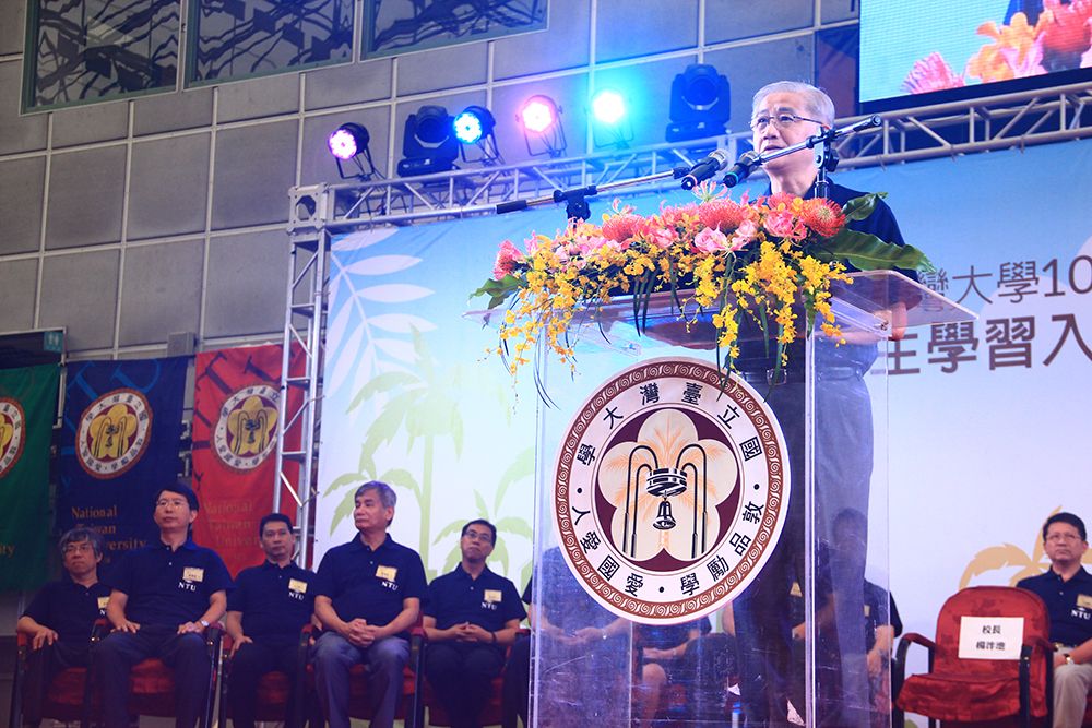 首先代表臺灣大學歡迎同學們加入臺大的行列,臺灣大學是一個歷史最悠久的學校,歡迎大家到臺灣大學,希望在往後的四年,大家可以在這邊學習得非常愉快,創造及充實自己的專業能力。因為臺大的新生比較多,我們希望大家都可以參加到開學典禮,所以從兩年前開始把開學典禮和新生書院放在一起,希望學長學姐們在帶領大家了解學校環境的同時,進而傳授經驗,讓各位在未來可以過得更愉快。
