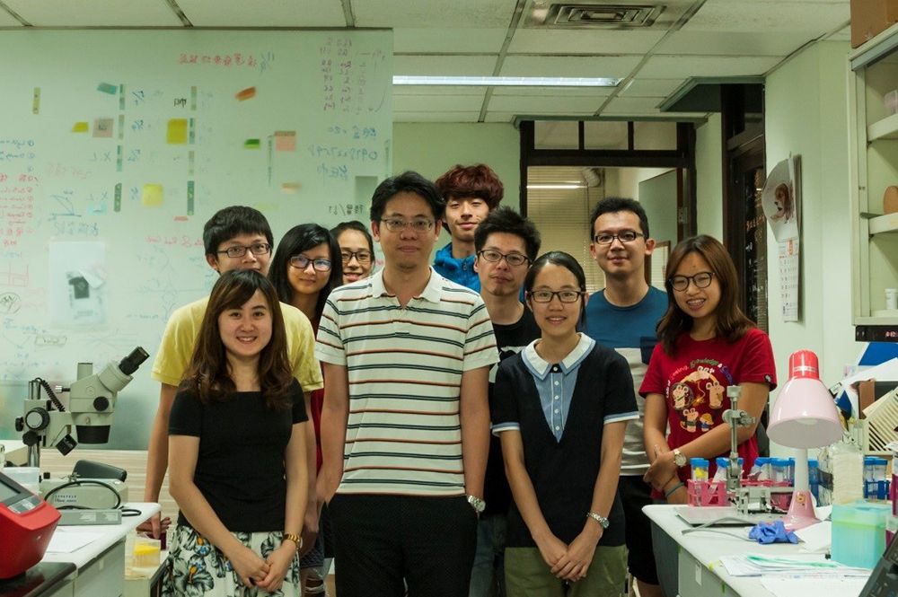 生命科學系陳示國老師(前排左二)與張宜婷(前排左一)