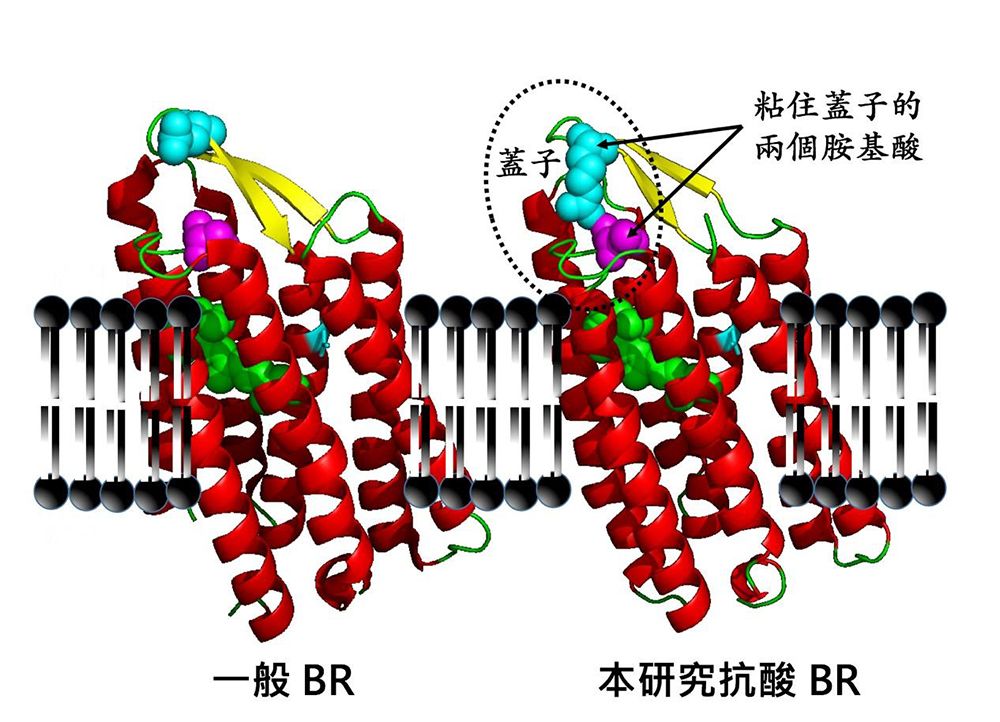這是本校參與解出的第一個膜蛋白質結構,也是臺灣第一個七穿膜的蛋白質結構、第二或第三個的多穿膜蛋白質結構。此蛋白質結構的解出,闡釋說明了這種以單一光子為能量來源就能進行質子輸送,間接生產生物能的膜蛋白質,如何可以克服外界的不利環境仍進行功能,此成果發表於期刊《The Journal of Biological Chemistry(JBC)》(2015)。