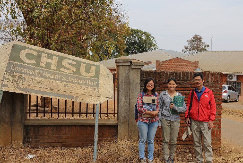 公共衛生學系主任黃耀輝八月下旬到馬拉威探視刻正在當地進行暑期海外實習的大三學生洪梓萱與曾靖軒。這是自2012年初公衛系開始選派學生至馬拉威進行暑期海外實習以來,連續第五年送學生來此地進行國際衛生工作實習。