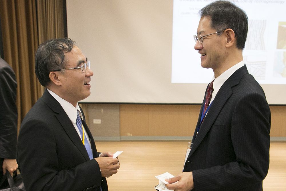 東大工學院光石衛院長與臺大工學院陳文章副院長交談
