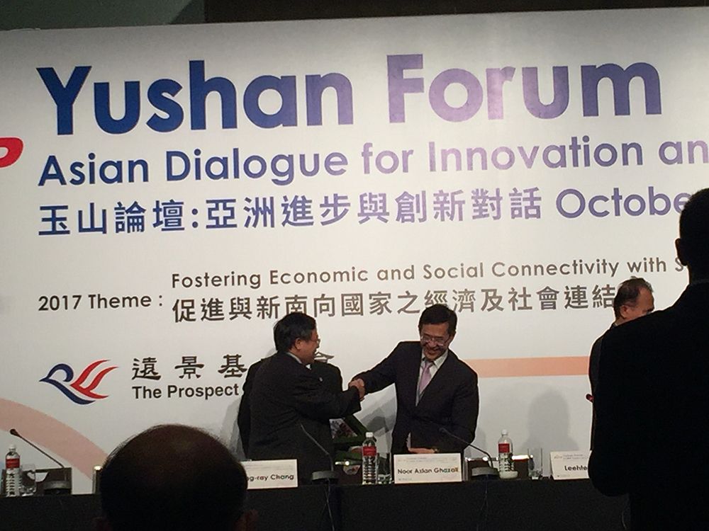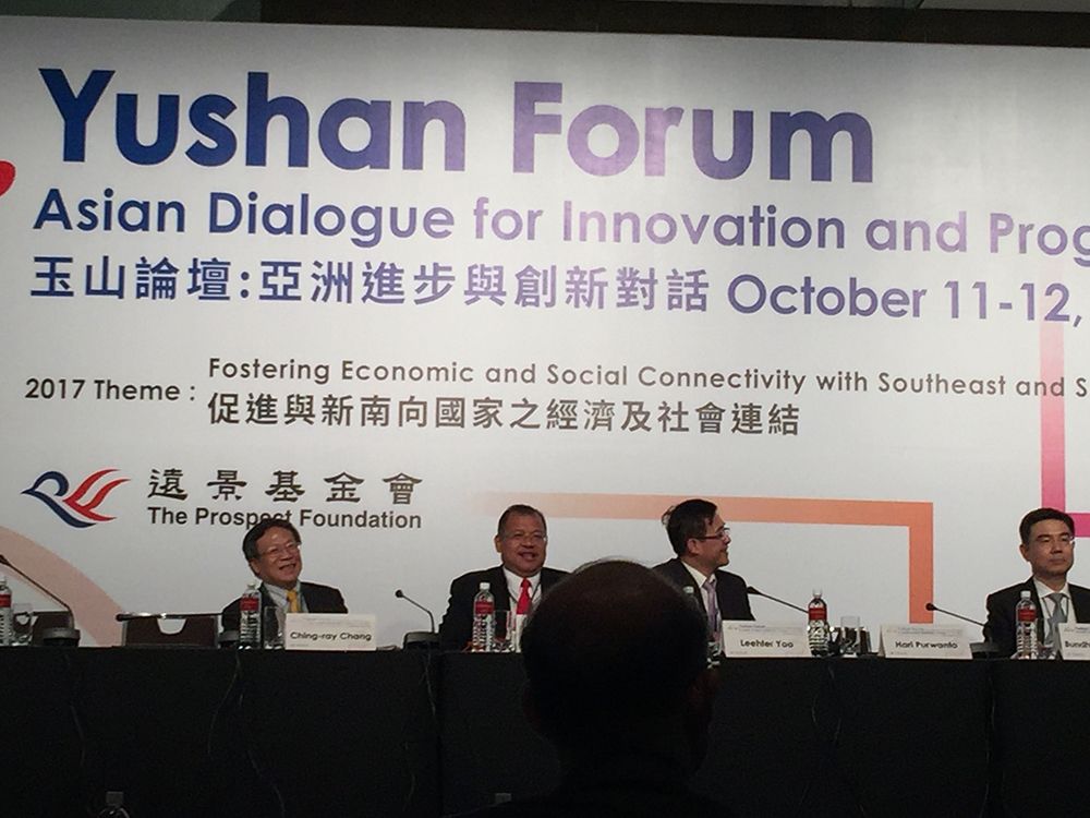 為了促進與新南向國家的經濟社會連結、帶動亞洲跨領域的人才培育與高教創新,遠景基金會於 10 月 11 - 12 日假臺北君悅飯店主辦「玉山論壇:亞洲進步與創新對話」。本校張慶瑞前代理校長暨行政副校長應邀出席與會,參與第二場由姚立德政務次長主持的論壇,張副校長針對「人力資源」的主題,首先省思高教的角色和定位,繼而提出高教的挑戰與迷思,探討大學教育如何因應社會的變化和國家發展的需求,靈活延伸觸角。他舉臺灣大學為例,橫向尋求與其他大學和業界聯盟合作,縱向秉持培育跨領域人才的初衷與遠見,發揮作為一流大學應盡的社會責任和引領臺灣的高教邁向國際的標竿; 最後追本溯源,提出日新月異的科技,最終仍是為了謀求人類的福祉與進步為目的,形塑一個嶄新的「世界大同」的社會。