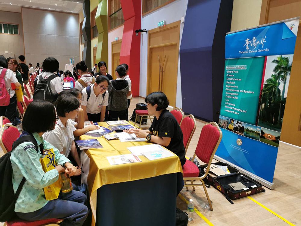 吉隆坡坤成中學及中華獨立中學海外留學教育展今年各自聚集近15個國家超過60個教育機構前來設攤。國際事務處境外學位生招生專員程于芳表示,臺大科系選擇多、師資優良且學術資源及獎助學金豐富,學生可就近取得更好的學習資源,同時與世界各國名校接軌,實在是一項很好的自我投資。