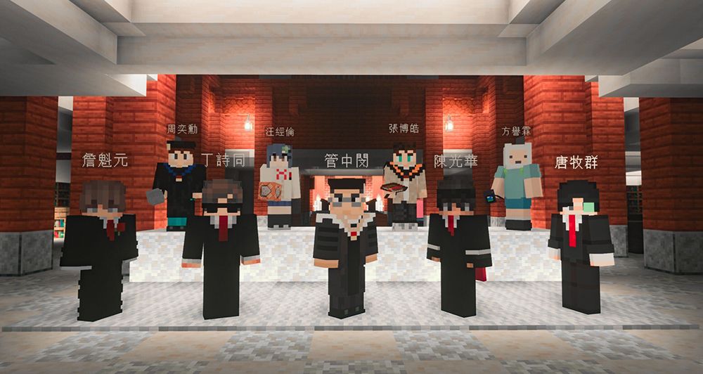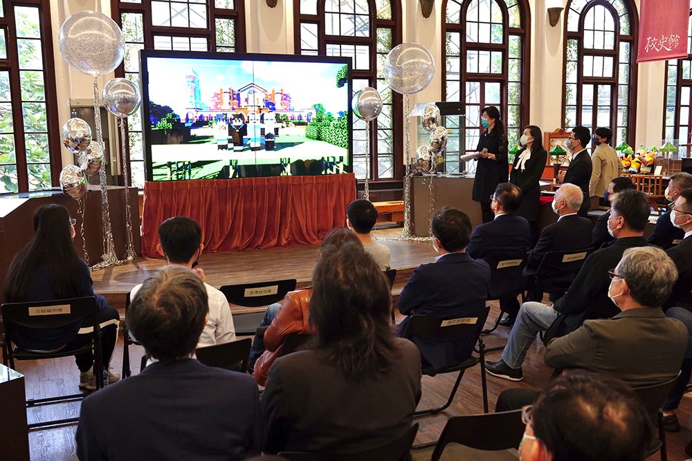 捐贈儀式上,除實體致謝活動外,學生團隊也用麥塊具標誌性的方塊狀人物,同步與校方師長於虛擬世界相聚、合影留念,包含校長管中閔、副教務長詹魁元、圖書館館長陳光華、校史館館長唐牧群,甚至無法到場的教務長丁詩同也透過方塊狀人物現身合照,這虛實合一的歷史性一刻值得紀念。麥塊團隊也即時於現場帶來臺大熱點的導覽,走進虛擬臺大,細膩的建築結構、地景風貌,以及場所指標性聲音的發送,在在顯現建築師們的用心,更真實呈現臺大人的日常。